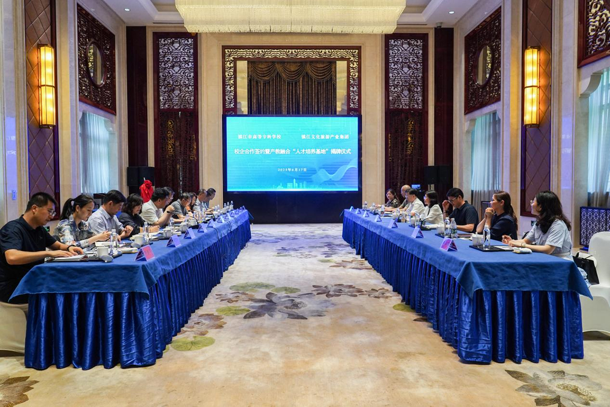6月17日上午,我校与镇江文化旅游产业集团在一泉宾馆隆重举行校企合作签约暨产教融合“人才培养基地”揭牌仪式。此次合作标志着校地双方在深化产教融合、共育文旅产业人才方面迈出实质性步伐。