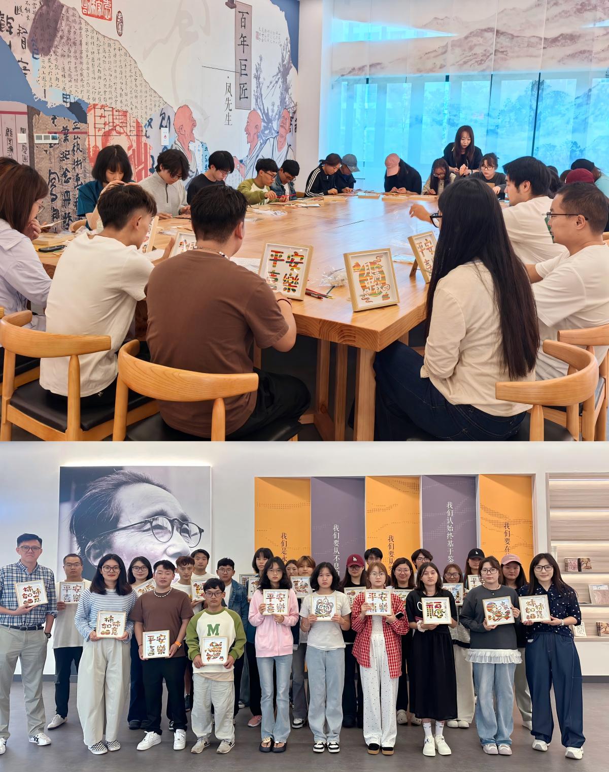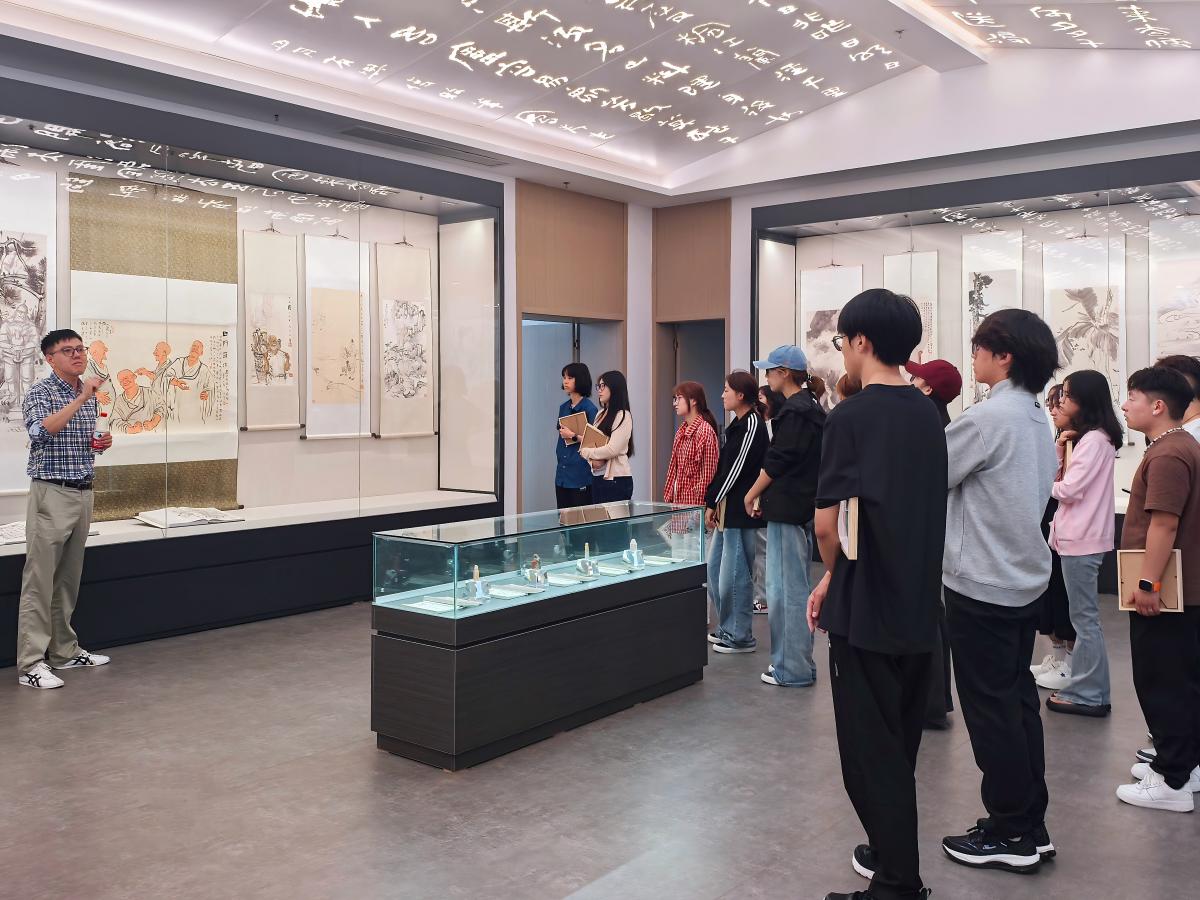 竹编暖意尚浓,校史文脉探寻之旅随即开启。艺术设计学院房容老师的生动讲解,让师生们深入了解吕凤子先生“崇爱尚美”的教育理念,体悟其“爱无涯、美无极”的人生境界与艺术追求。徜徉于馆藏书画与珍贵手稿之间,同学们不仅加深了对校史文化的认知,更在艺术熏陶中增强了校园归属感与认同感。