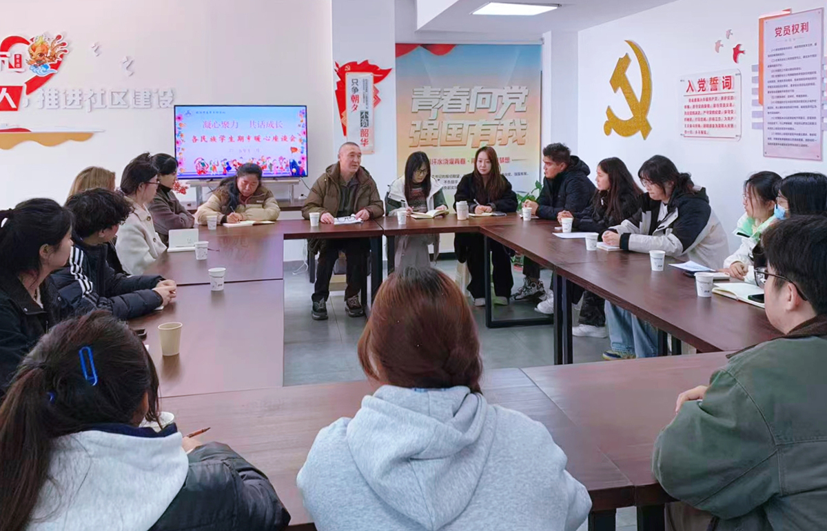 为深入铸牢中华民族共同体意识,护航各族学子成长成才,11月20日上午,我校“凝心聚力,共话成长”各民族学生暖心座谈会在一站式党群服务中心温情召开。学生发展党总支书记杨晔、内派高校教师哈那提出席会议,各学院少数民族工作专职辅导员、各民族学生代表参加座谈。会议由学生处副处长马芹主持。