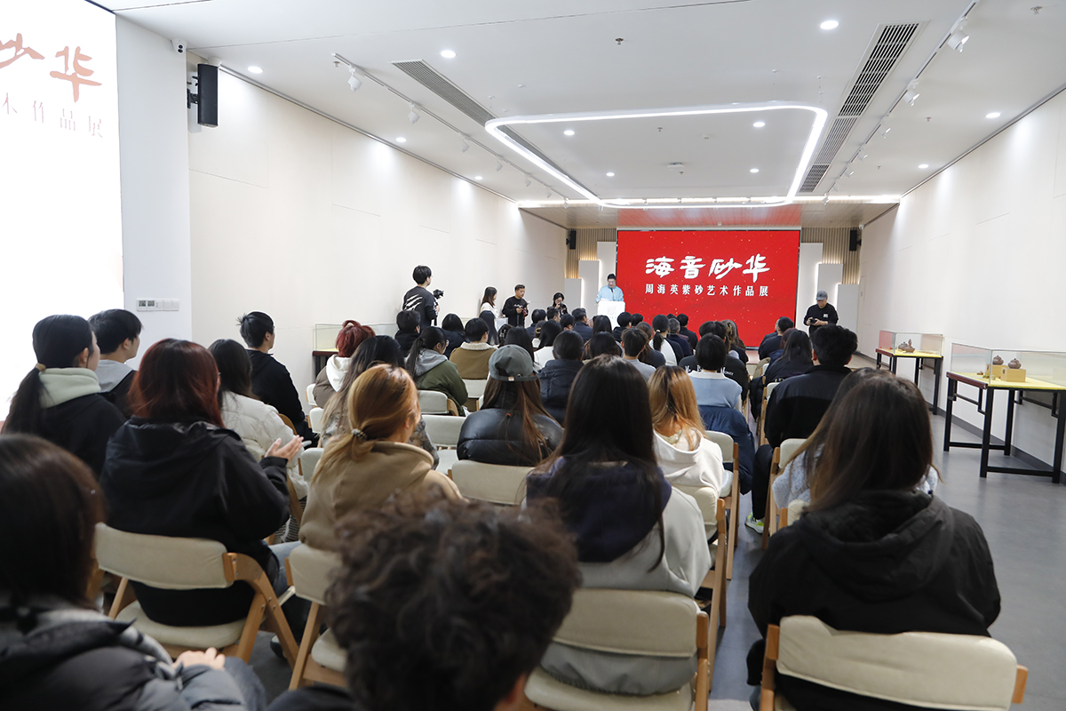 展览开幕式后,举行了周海英紫砂艺术研讨座谈会,与会嘉宾围绕周海英紫砂艺术展开热烈讨论和交流,并就紫砂艺术进校园、跨界合作等话题进行了磋商。