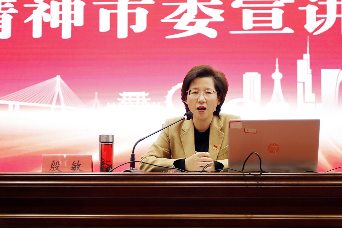 市委宣讲团团长,市委常委、市委宣传部部长殷敏作报告