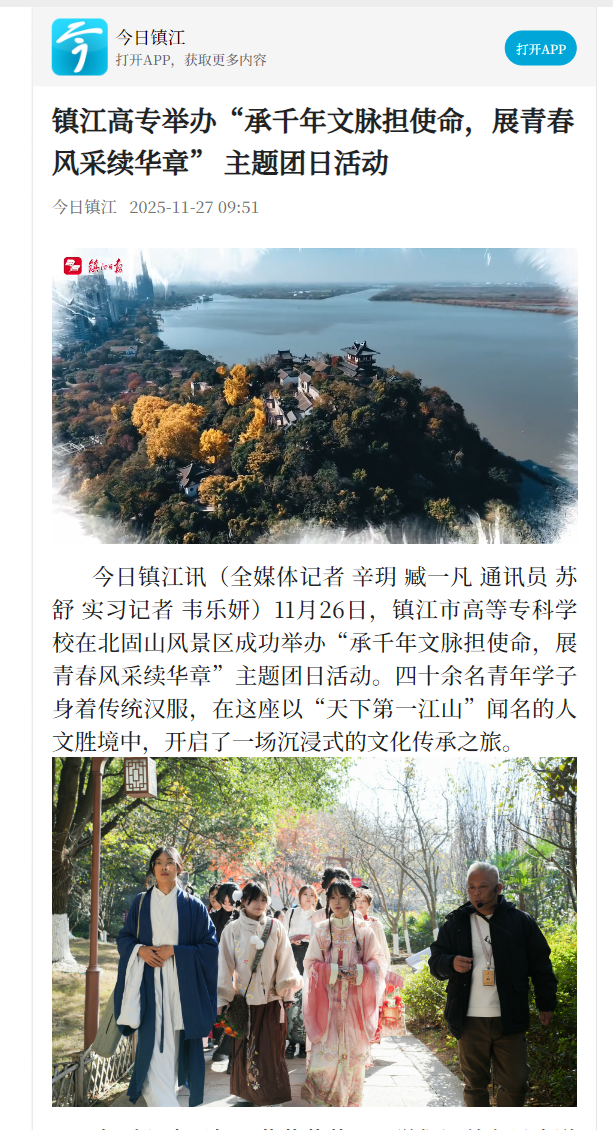 今日镇江|金山网|镇江高专举办“承千年文脉担使命,展青春风采续华章” 主题团日活动