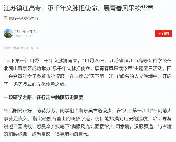 学习强国|今日镇江|金山网|镇江高专举办“承千年文脉担使命,展青春风采续华章” 主题团日活动