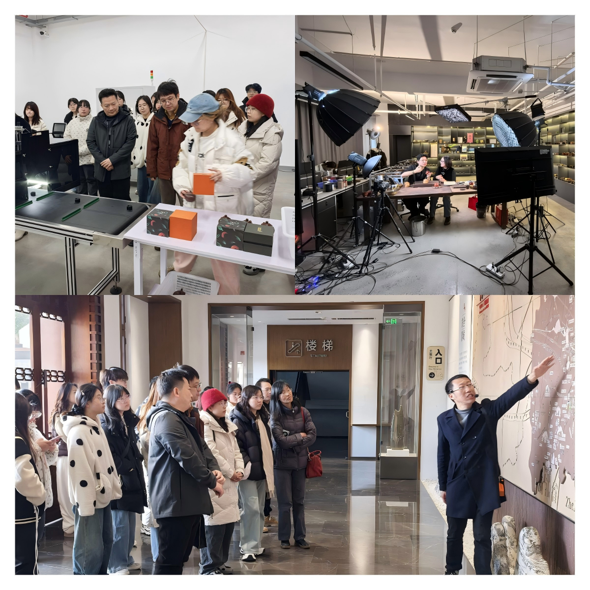 研学最后一站,师生们抵达宜兴丁蜀镇木石·陶文化数字产业园——该园区因紫砂陶直播电商运营的突出成效,成功入选2025年县域直播电商中心典型案例。园区负责人以紫砂陶产业为例,详细拆解了直播电商的全流程运营逻辑:从电商账号定位、品牌视觉设计,到直播场景搭建、新媒体内容策划,再到数字化营销与用户运营,全方位分享了传统产业借助直播电商实现“破圈”增长的实战经验。