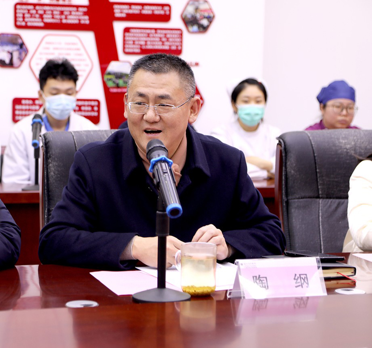 镇江市中医院党委副书记、院长陶纲讲话 镇江市中医院党委副书记、院长陶纲作了题为“院校协同谋发展 合作共赢谱新篇”工作报告,系统介绍了医院的发展历程、特色优势、护理队伍建设及人才需求等情况。他表示,医院高度重视与高校的合作,希望进一步拓展在护理人才培养、临床教学与实践等领域的协同。
