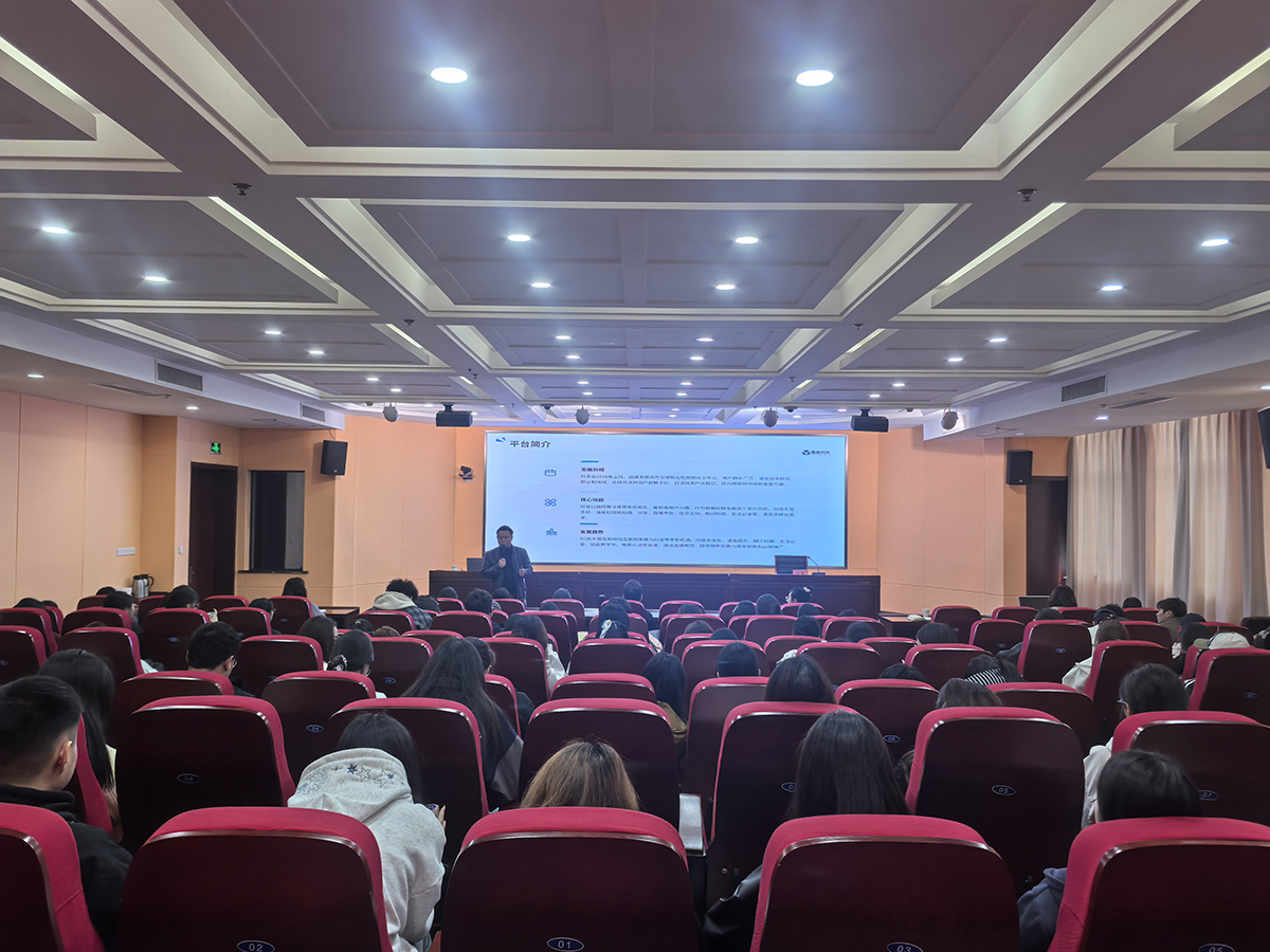 为深化产教融合,助力青年学子把握短视频与直播电商的时代机遇,4月1日下午,南京禹雍科技有限公司电商运营总监郭万宇应邀走进我校正则讲坛,以“产教融合育英才,抖音实战启新程”为题,为140余名师生带来一堂深化产教融合、赋能人才培养的生动实践课。本次活动也是我校数商产业学院引入优质企业资源、深化实践教学的重要举措之一。活动由财经商贸学院副院长孙昱主持。 数商产业学院自成立以来,紧密对接直播电商行业