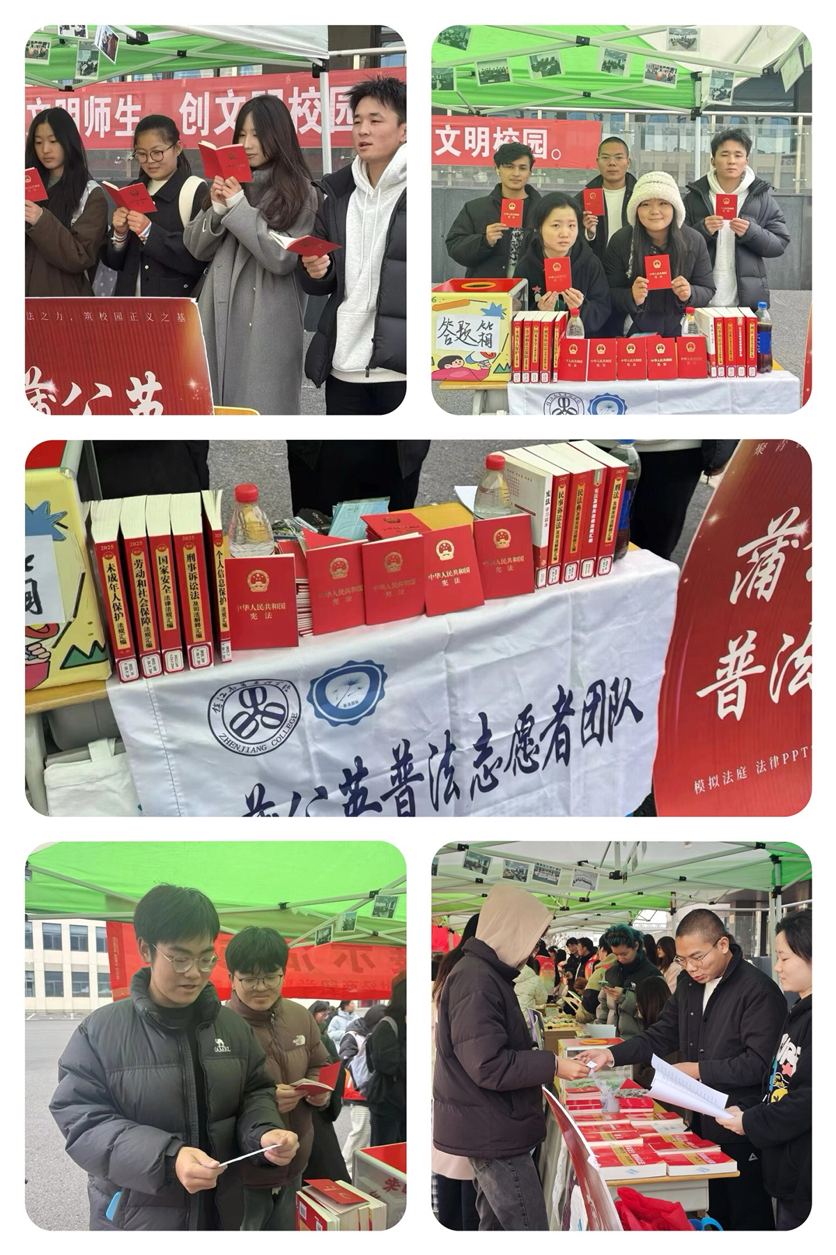 12月4日,人文与旅游学院蒲公英普法社在文体中心门口组织开展了一场别开生面的宪法日主题普法活动。活动以“大力弘扬宪法精神,建设社会主义法治文化”为主题,通过“仪式诵读+趣味竞答”相结合的方式,推动宪法知识走近师生、融入日常,在校园内营造出尊法、学法、守法、用法的良好氛围。 活动在庄严的宪法诵读声中拉开序幕。在场师生齐声朗读宪法条款,在铿锵有力的诵读中感受宪法的权威与尊严,进一步强化了对宪法精