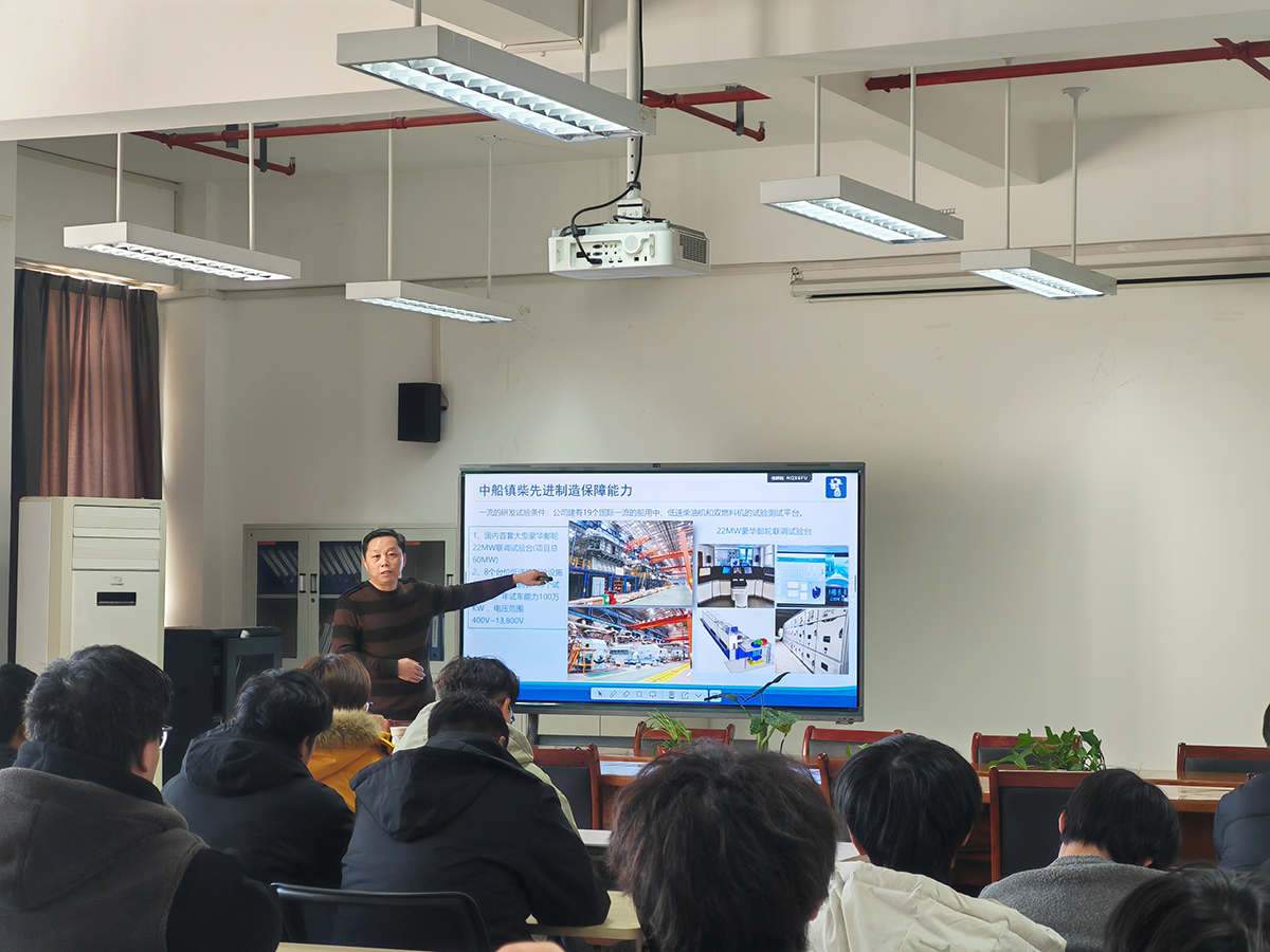为深化产教融合,助力人才培养与行业需求精准对接,近日,现代装备制造学院特邀镇江市产业导师、学院产业教授、中船动力镇江有限公司高级工程师廖新山来校为60多名师生带来了一场题为“船舶动力发展及先进制造技术应用”的专题讲座。会议由学院党总支书记许学军主持。本次活动也是学院学术活动月活动之一。 讲座伊始,廖新山工程师以船舶动力系统的发展脉络为主线,从传统蒸汽机切入,梳理了内燃机从19世纪末汽油机型到