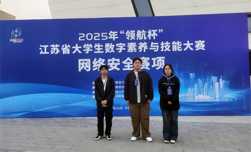 10月26日,由江苏省委网信办、江苏省教育厅联合主办的2025年“领航杯”江苏省大学生数字素养与技能大赛网络信息安全赛项线下决赛在南京邮电大学仙林校区圆满落幕。本届赛事设立教师组、本科组、高职组三个组别。全省100多支高职学生队伍报名参加线上的初赛,最终,高职组、本科组各有40支队伍与40支教师队伍一起参加了各组别的线下决赛。颁奖现场 我校由图文信息中心郭圣、电气与信息学院卢任远、王雨璇等三